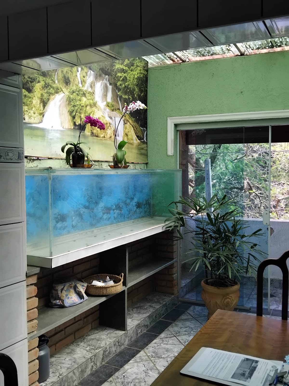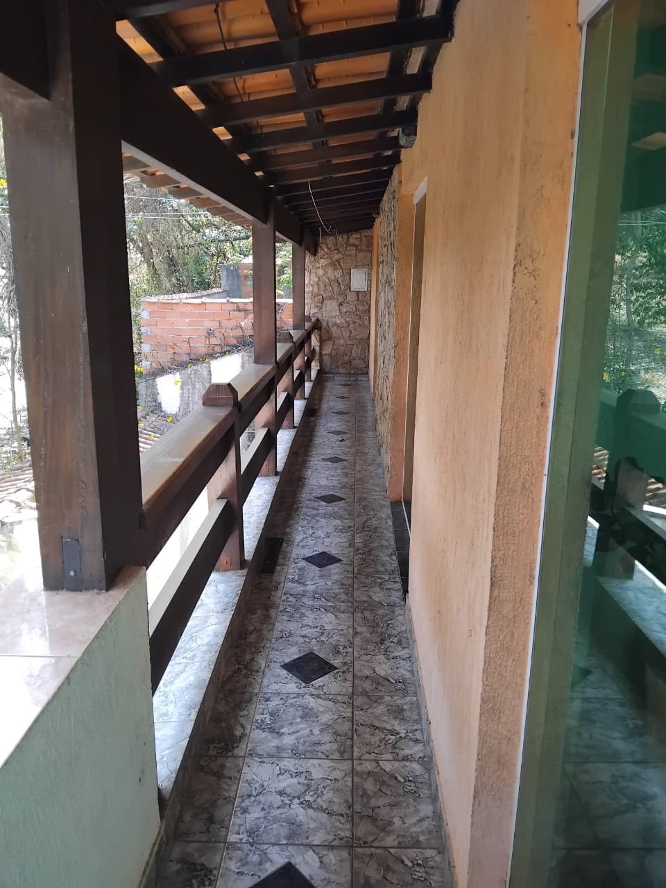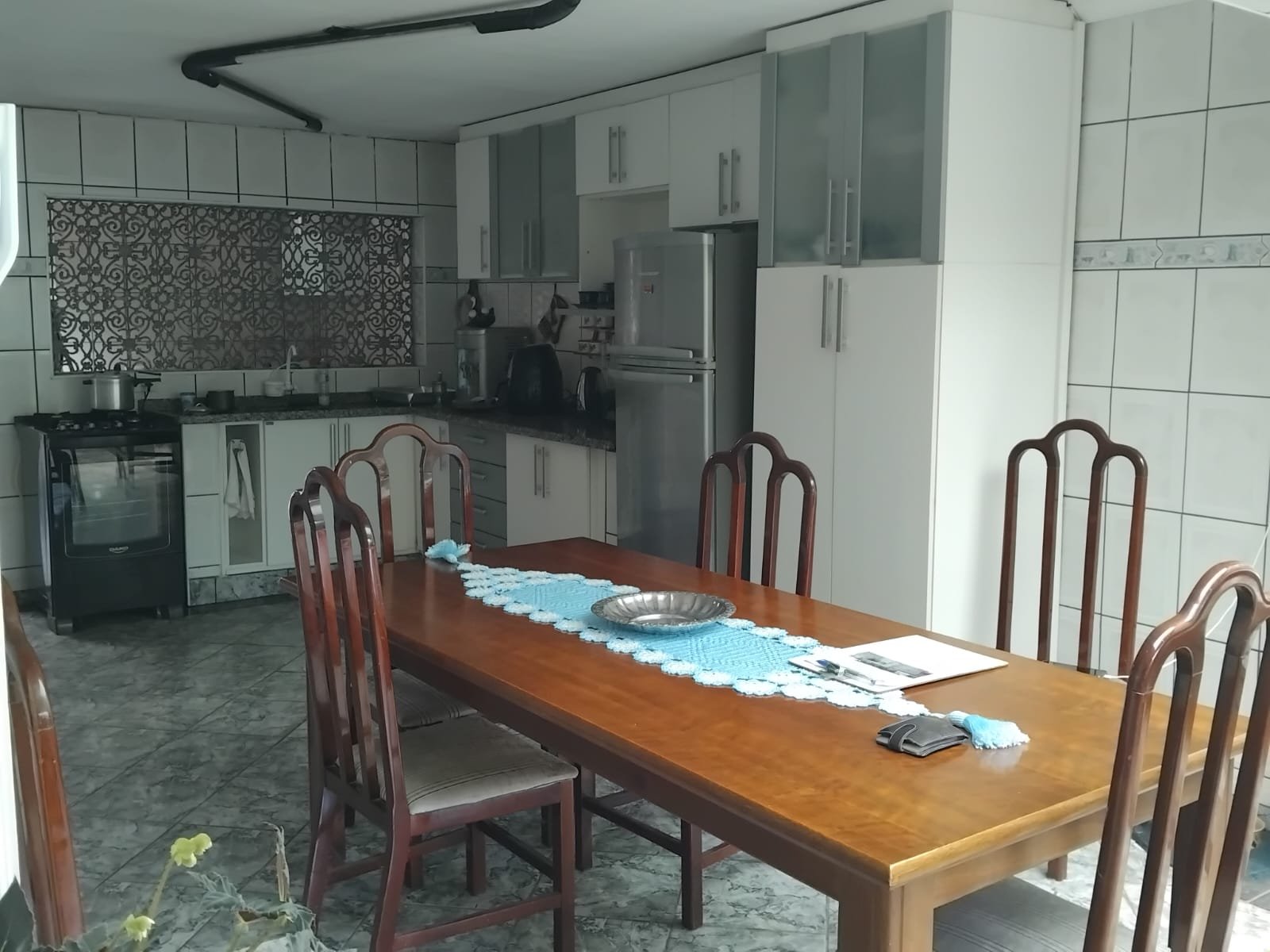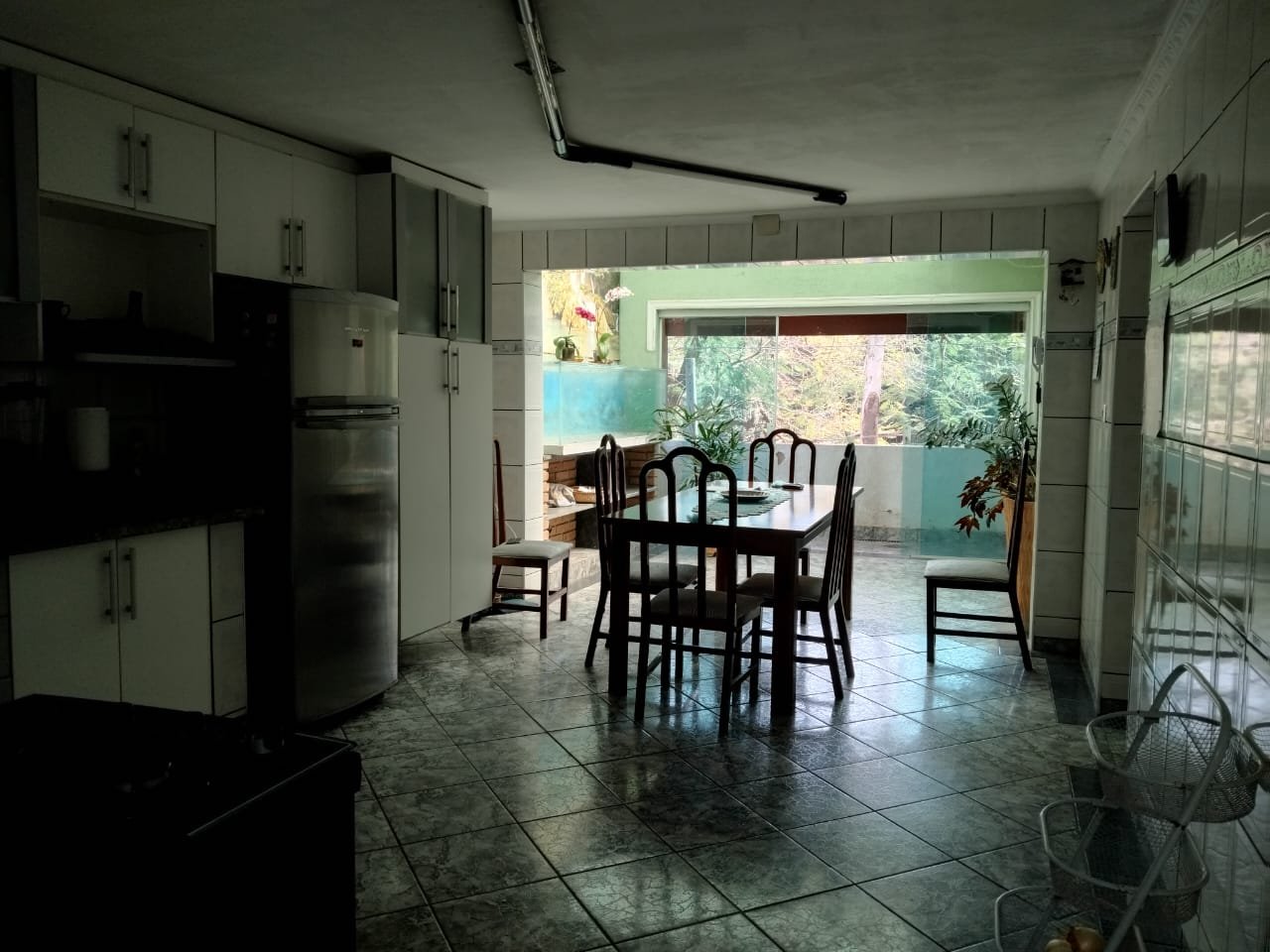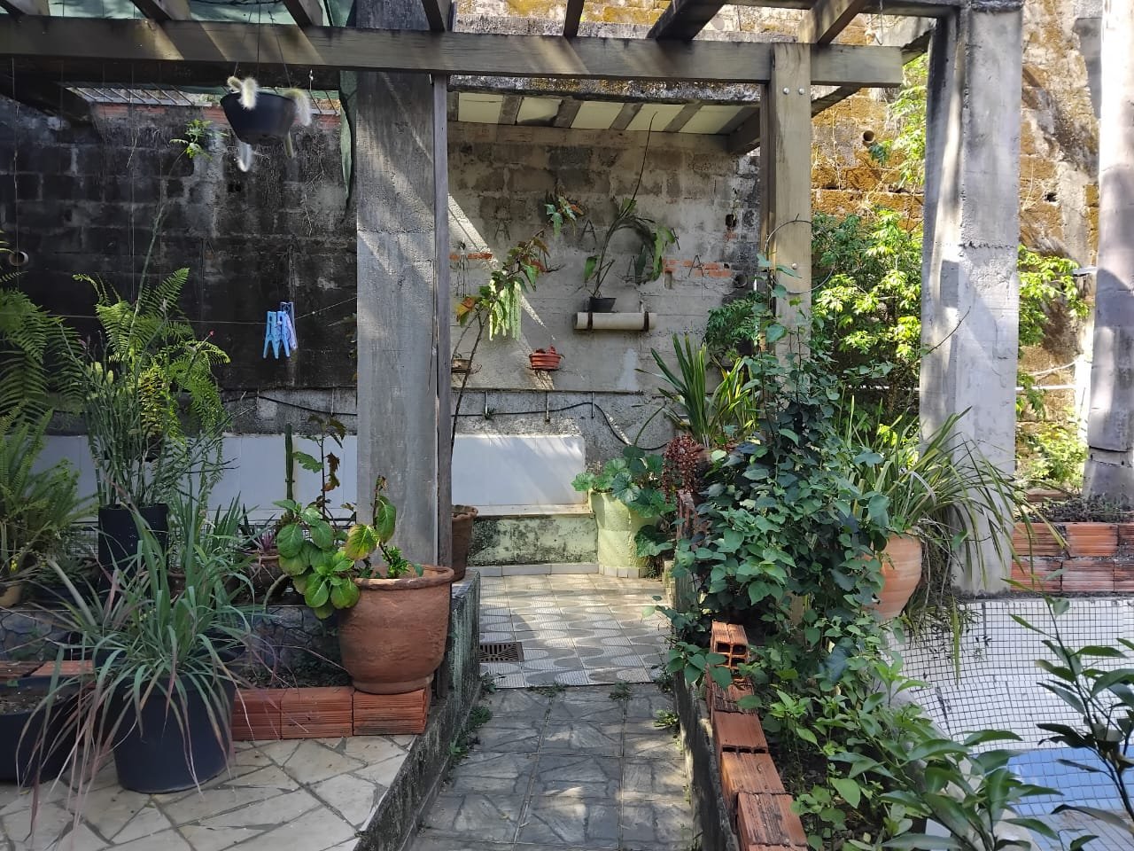 Pavimento inferior; com três cômodos, área de serviço, garagem.